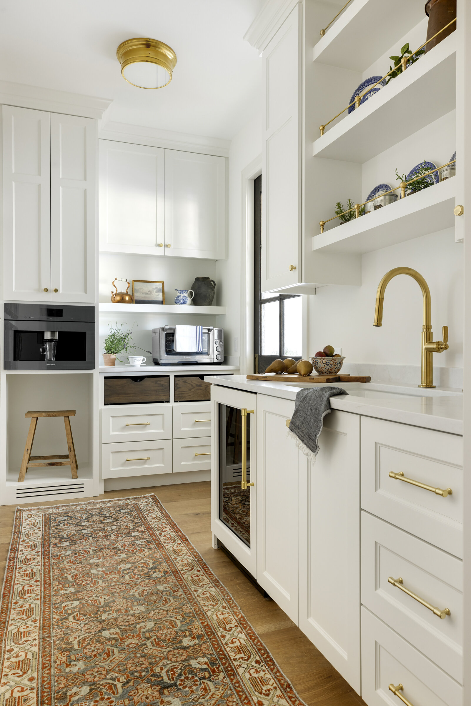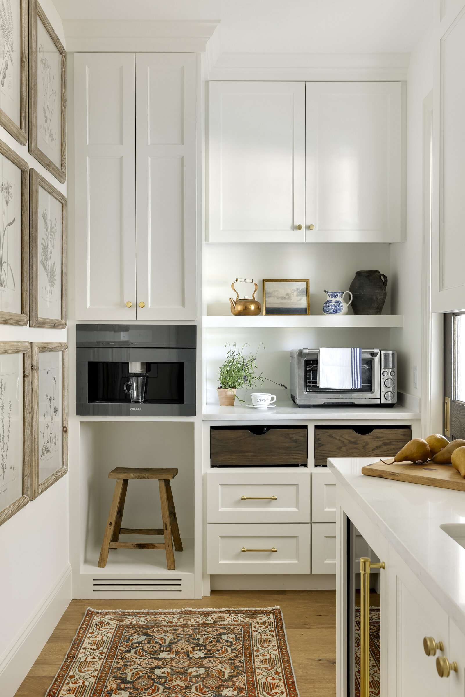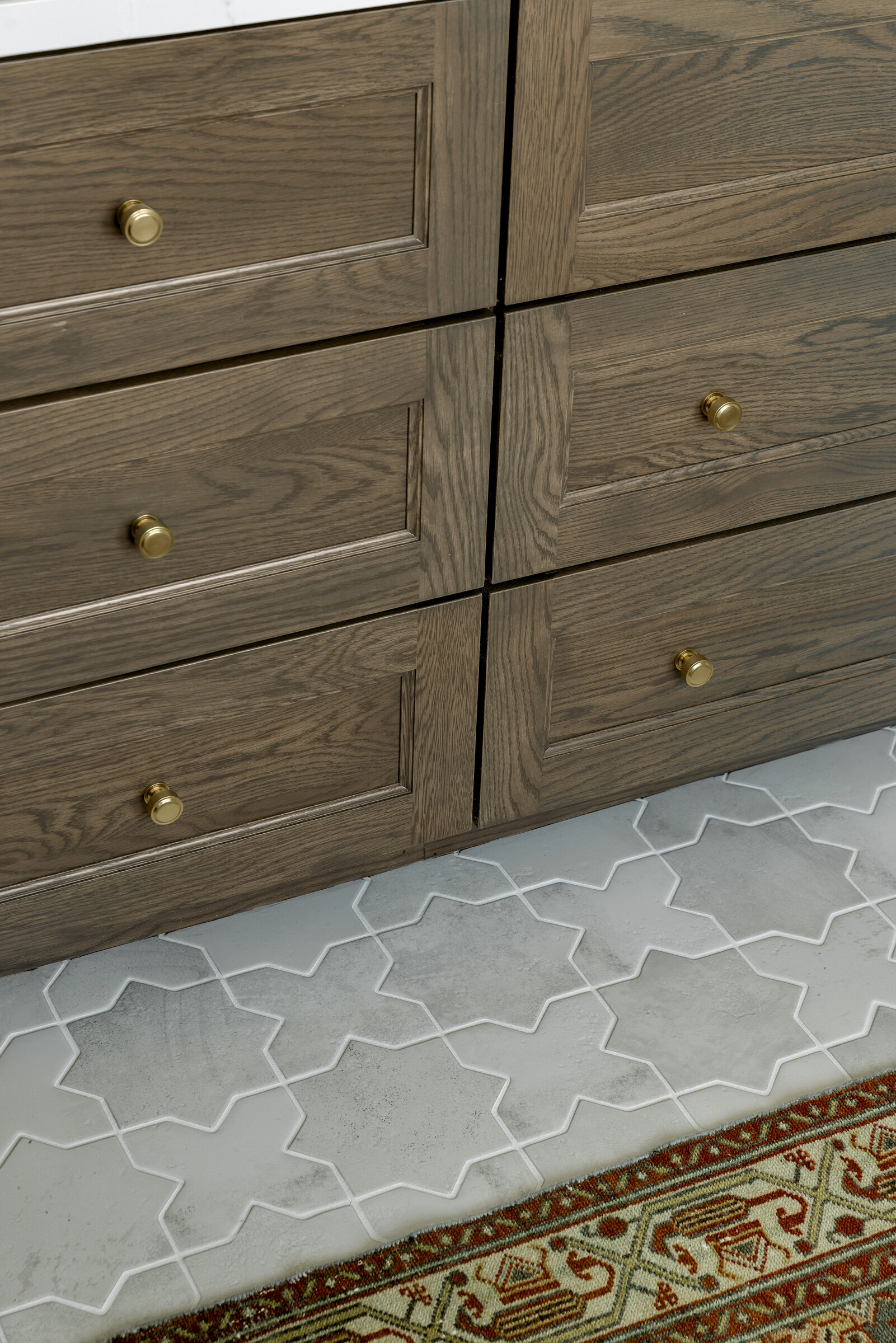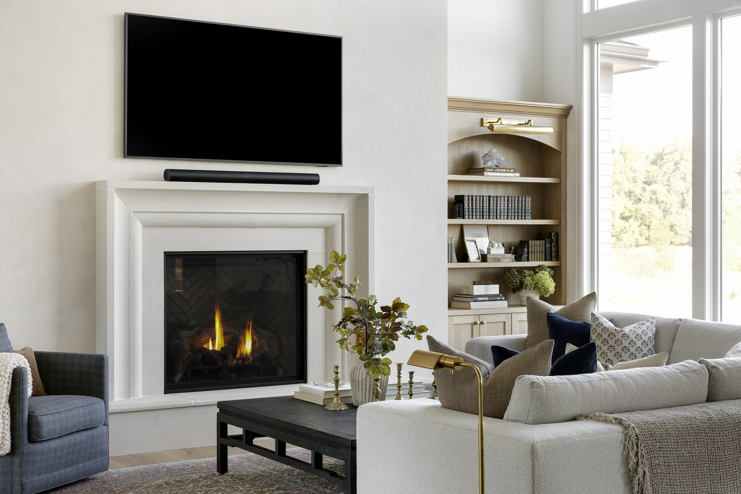 This home captures the perfect blend of modern and classic interior design. In the kitchen, a subtle arched hearth softens the architecture and plays beautifully against the clean, modern lines of the sconces inside it. The custom island detailing adds depth and craftsmanship, grounding the space with warm, timeless character.