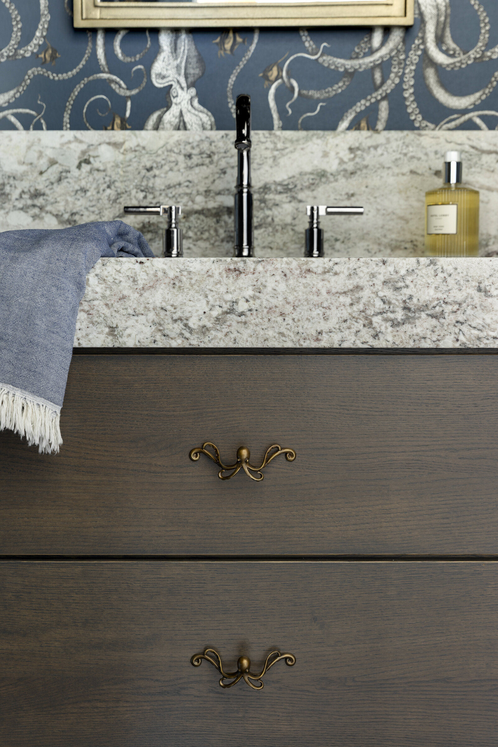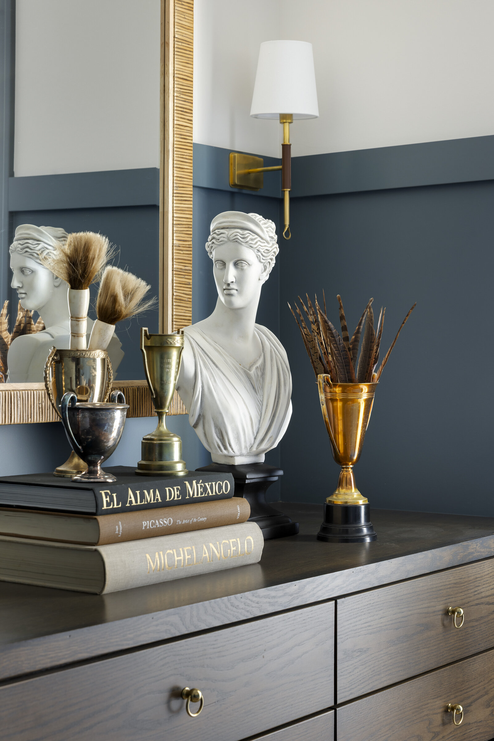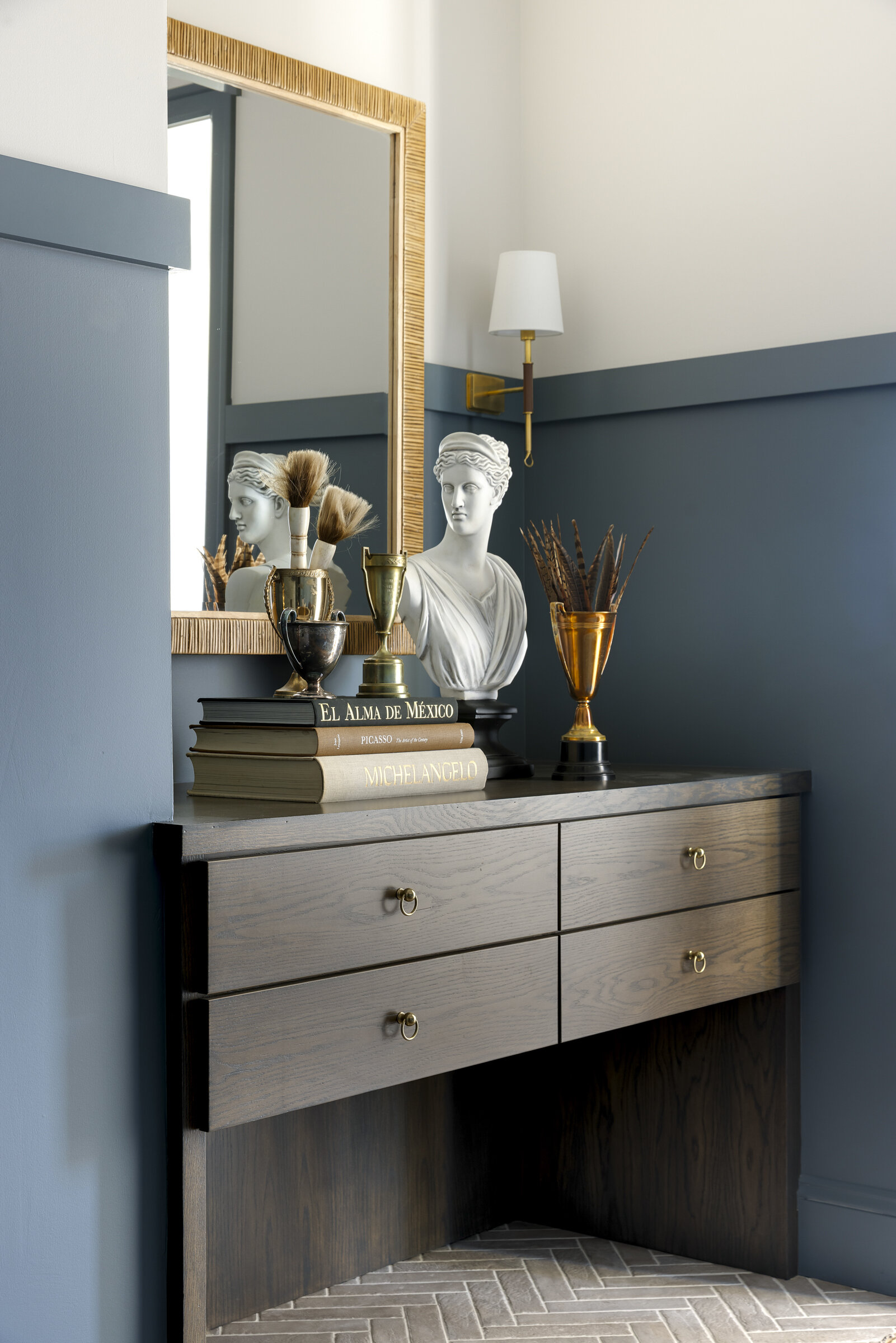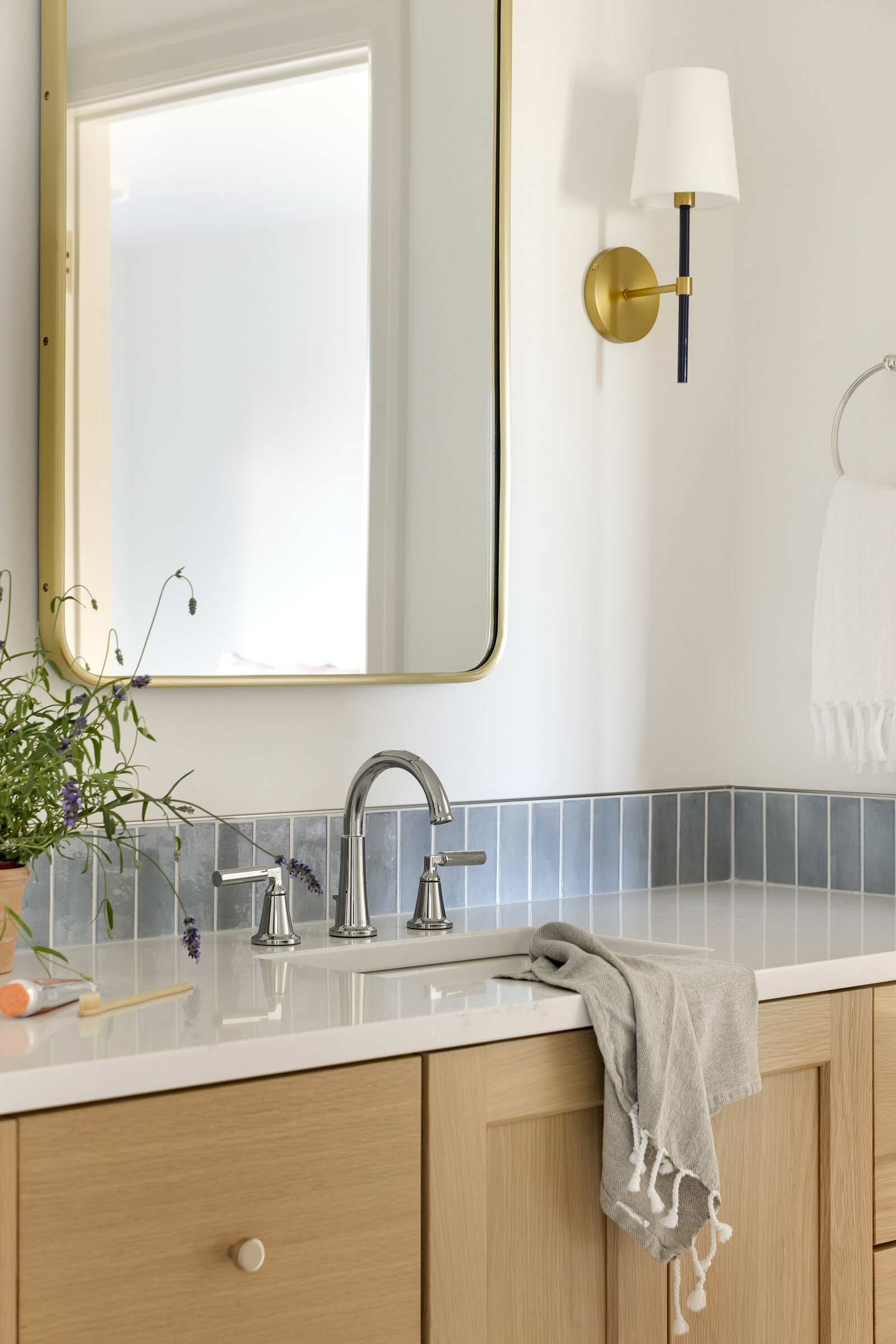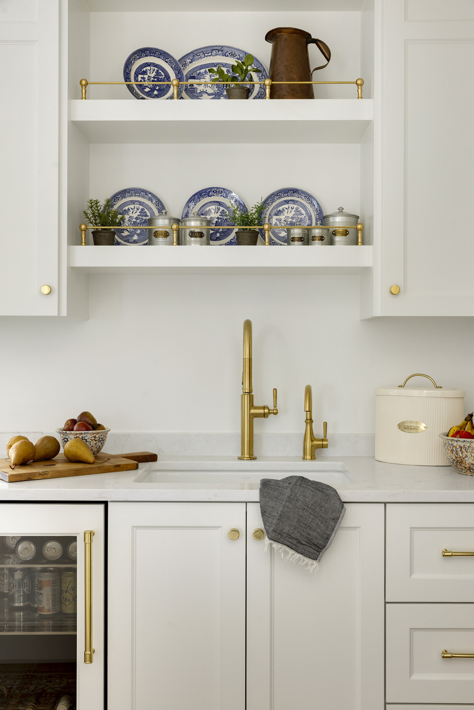 This home captures the perfect blend of modern and classic interior design. In the kitchen, a subtle arched hearth softens the architecture and plays beautifully against the clean, modern lines of the sconces inside it. The custom island detailing adds depth and craftsmanship, grounding the space with warm, timeless character.